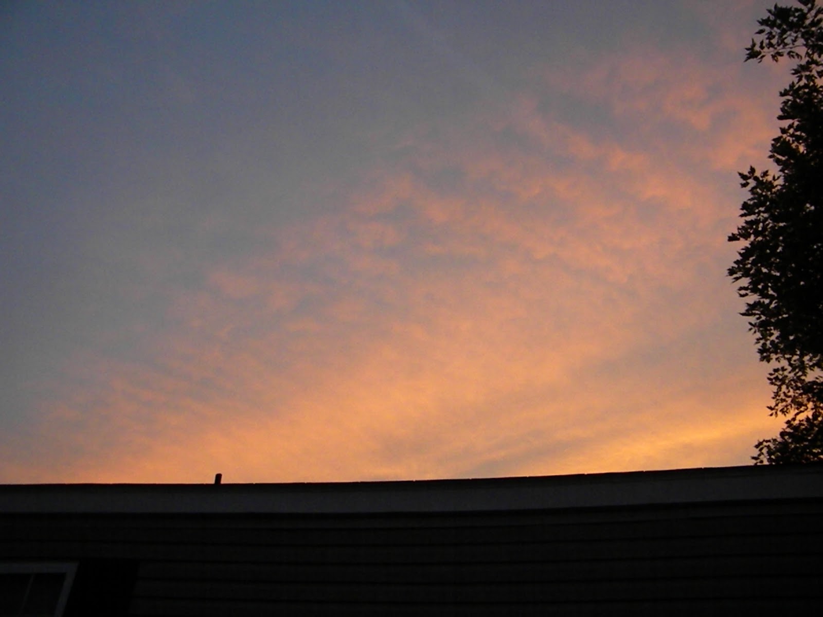 One evening busy working at my sink, I spied beautiful colors in the sky. I grabbed my camera and hurried outside to capture the changing colors of the sun setting in the Indiana late summer sky.